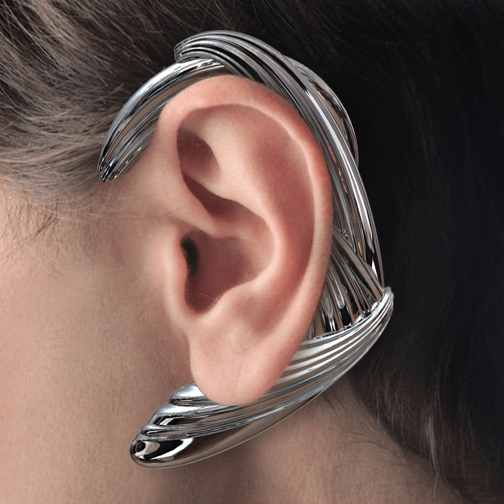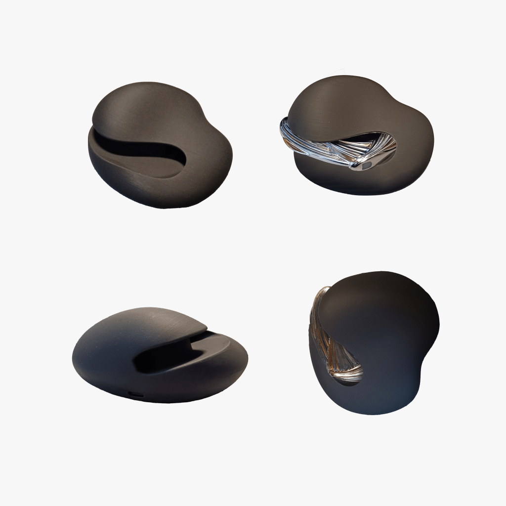 Sound and music can also capture life. A chance recording was the starting point for this emotional earring design, „Klippenhauch.“
