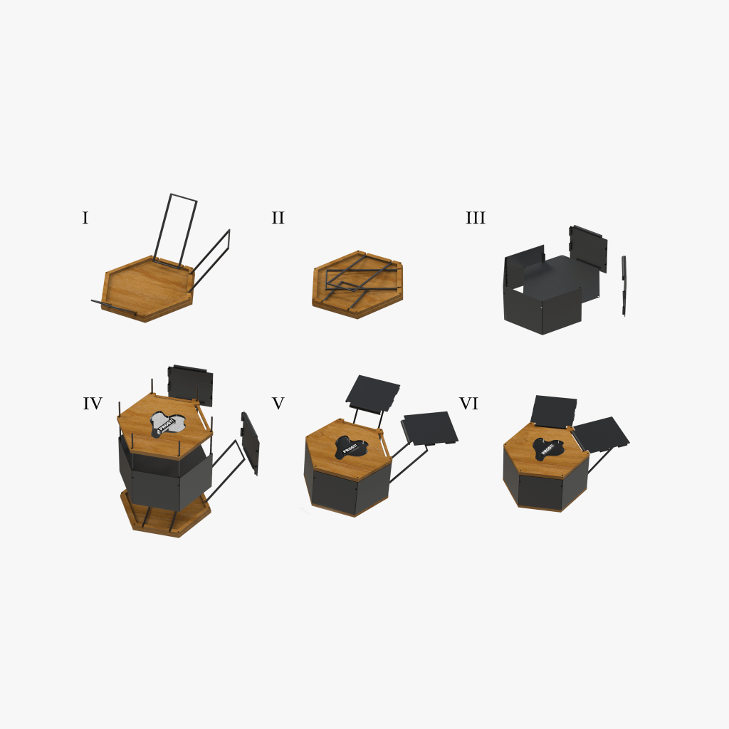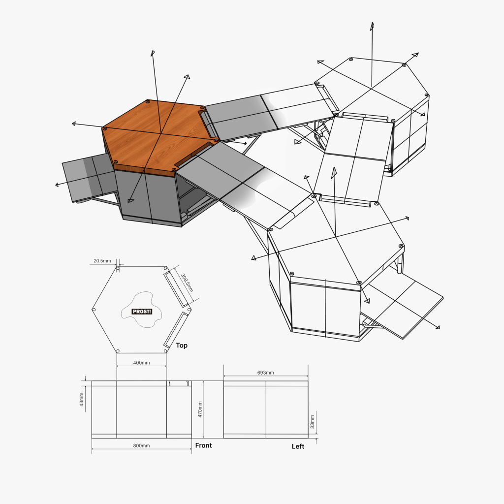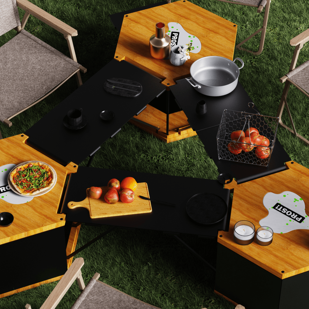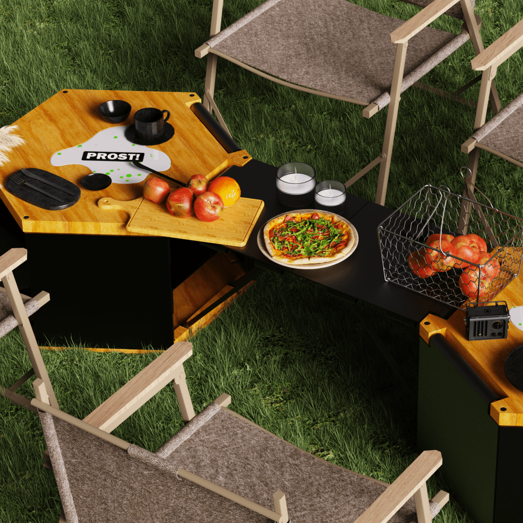Chinese-style camping has become increasingly popular in China. Inspired by this trend, I redesigned the structure of camping tables and chairs and created „Prost.“